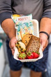 - Snacks: pastries, cookies, chips, and fresh fruit